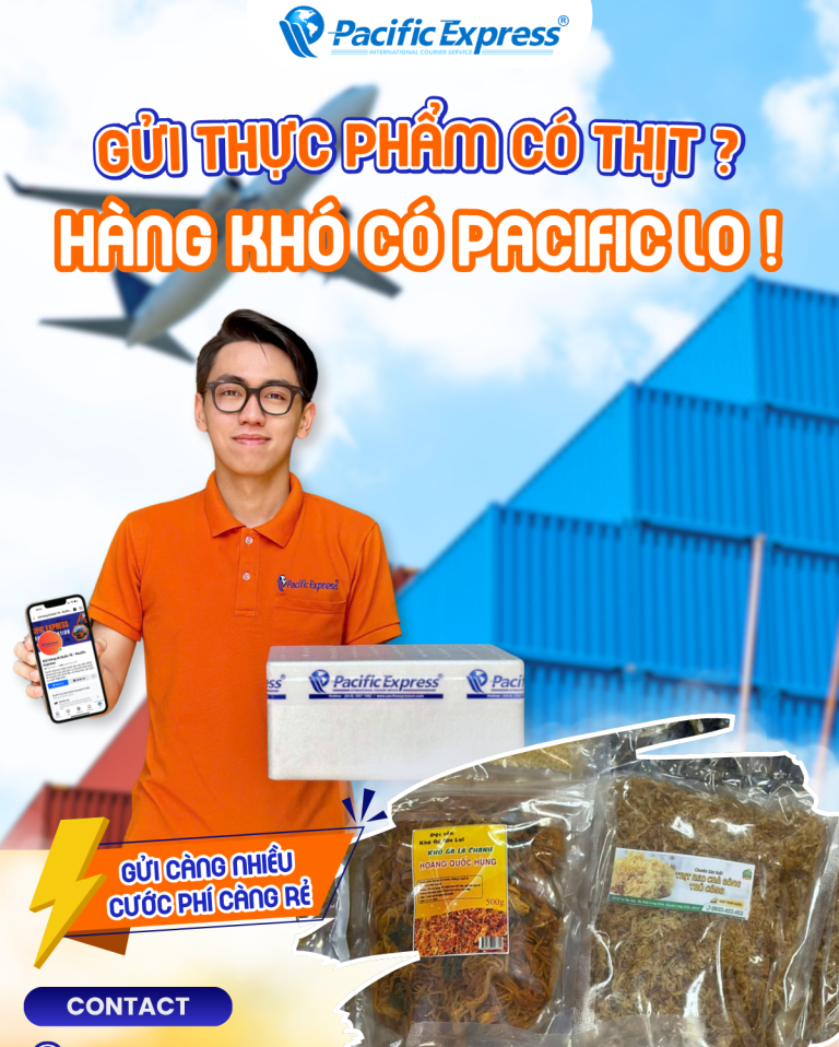 PACIFIC EXRESS: GỬI THỰC PHẨM KHÔ CÓ THỊT ĐI NƯỚC NGOÀI XỬ LÝ HÀNG KHÓ, TRỌN VỊ QUÊ NHÀ Khô bò dai ngọt, chà bông đậm đà, lạp xưởng thơm lừng, hay một gói khô gà lá chanh cay cay… là những đặc sản ẩm thực “gây thương nhớ” không chỉ với người Việt trong nước, mà còn được cộng đồng kiều bào tại Mỹ, Úc, Canada… đặc biệt yêu thích. Những món ăn này không chỉ thỏa mãn vị giác mà còn là sợi dây kết nối tinh thần mạnh mẽ, gợi nhớ về một miền ký ức thân thương nơi quê nhà. Tuy nhiên, đây cũng là nhóm hàng được xếp vào danh sách “hàng khó” khi gửi đi quốc tế. Nguyên nhân là do các quy định nhập khẩu nghiêm ngặt của nhiều quốc gia, đặc biệt là các nước phát triển, đối với thực phẩm có thành phần từ thịt. Nếu không tuân thủ đúng quy trình, hàng hóa rất dễ bị giữ lại ở hải quan, thậm chí là tiêu hủy. Điều này không chỉ gây thiệt hại về kinh tế mà còn khiến người gửi và người nhận thất vọng. Đừng lo lắng! Pacific Express với kinh nghiệm dày dặn trong việc xử lý hàng thực phẩm khô “khó gửi”, sẽ là đối tác tin cậy của bạn. Chúng tôi mang đến quy trình vận chuyển chuyên nghiệp, bài bản, giúp những đặc sản quê nhà này đến tay người nhận một cách an